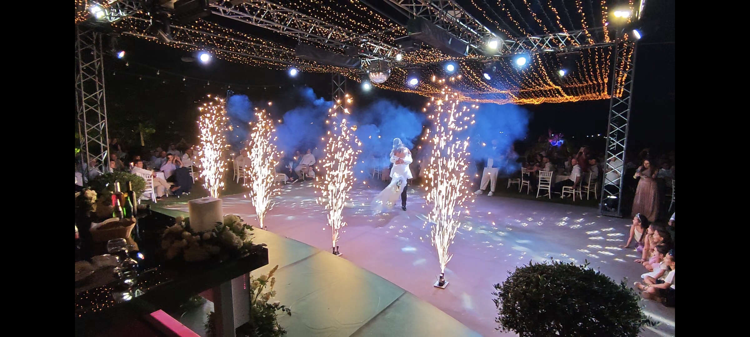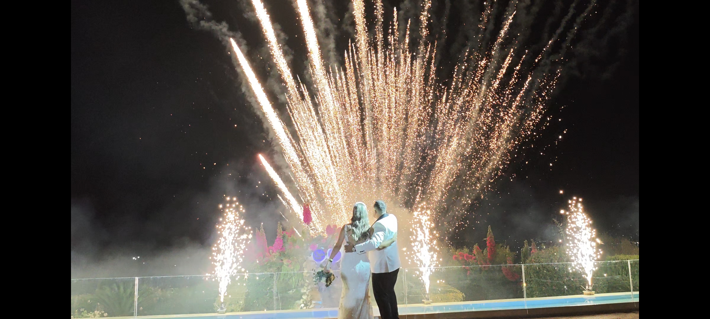 Έτσι επιλέξαμε διαλεχτά πυροτεχνήματα γιατί η πρόκληση ήταν να ανταποκριθούμε σε υψηλές απαιτήσεις και να προσφέρουμε κάτι που θα έμενε αξέχαστο. Το ζευγάρι ήταν διαθέσιμο να συνεργαστεί, να κάνει είσοδο σε συγκεκριμένους χρόνους, να μπει με κέφι και συγκεκριμένο χορευτικό.